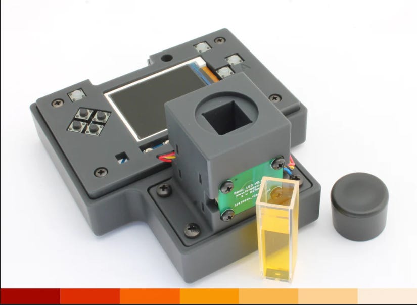 The iRodeo Open Colorimeter is an innovative tool for colorimetric analysis, allowing users to measure concentrations of substances via absorbance. This device is perfect for biohackers, researchers, and students looking to explore the world of analytical chemistry.